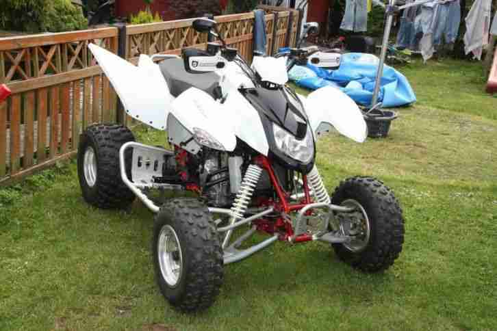 Das Quad wird als Bastlerfahrzeug verkauft, da folgende Sachen gemacht werden müssen:-Hinterreifen und Bremsbeläge wechseln-Die Verkleidung hat ein paar Risse-Reifen vorne rechts hat eine Unwucht.- Ölwechsel !