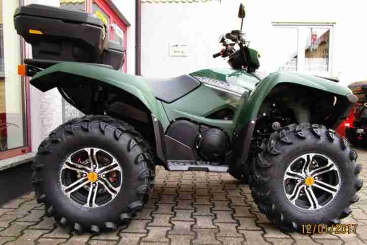12 Utility-Felgen mit groben, aggressiven Off-Road ReifenSeilwinde mit Bedienung am LenkerAnalog-CockpitLED Rückleuchten in KlarglasoptikGepäckträger vorne und hinten12V SteckdoseUnterfahrschutzRahmen:Länge: 2.120mmBreite: 1.170mmHöhe: 1.230mmRadstand: 1.290mmSitzhöhe: 920mmBodenfreiheit:288 mmTrockengewicht:313 kgTankvolumen:19 l