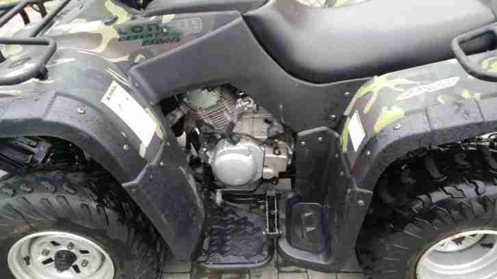 ~ Es Fährt, ist angemeldet und hat TÜV bis 07/15. ~ Sowohl wie im Gelände als auch auf der Strasse lässt es sich gut fahren. ~ Besitzt Strassen Zulassung. ~ Es ist für 2 Personen zugelassen.~ Auspuff ist Original (extra verschraubt) dadurch ist das Fahren ohne Probleme möglich~ Der Vergaser müsste gereinigt werden durch längere Standzeit, daher auch der Verkauf da ich Ihn Aufgrund des jetzigen Arbeitsweges von 60 km nicht mehr nutze.~ Der Handleihzug müsste überprüft werden ist zur Zeit nicht möglich . E-Starter funktioniert einwandfrei.