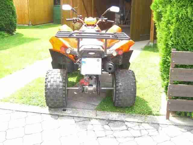 Ich verkaufe hier mein Quad, weil ich einfach nicht zum fahren komme.Das Quad hat einen Koffer und Cross und Straßenreifen dabei.Außerdem habe ich vom Vorbesitzer noch Schneeketten mit dazu bekommen. Der Zustand des Quads ist gut, hat leichte Gebrauchsspuren. Zwei Kleinlichkeiten müssen gemacht werden, die Feststellbremse (Handbremse)funktioniert nicht,außerdem wenn das Quad 3 Wochen nicht gefahren wird ist die Batterie leer.Sonst passt alles.