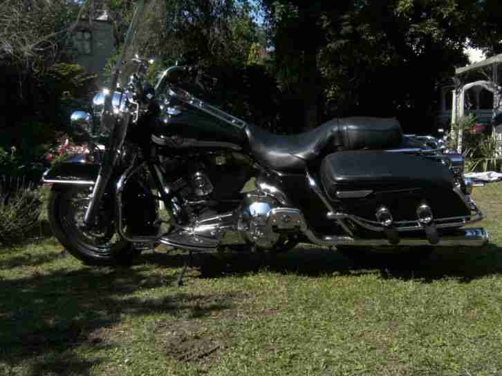 Road King Classic 100 th.Aniversary Modell, Ez.2003,12000Mls , Einspritzer ,Python Auspuff (super dumpfer Klang),abnehmbare Tourenscheibe,Kofferreling,Zusatzscheinwerfer,Doppelscheibenbremse,Motorschutzbuegel,Reifen fast neu,div.Chromteile, Harley ist in Deutschland angemeldet.Top Zustand.