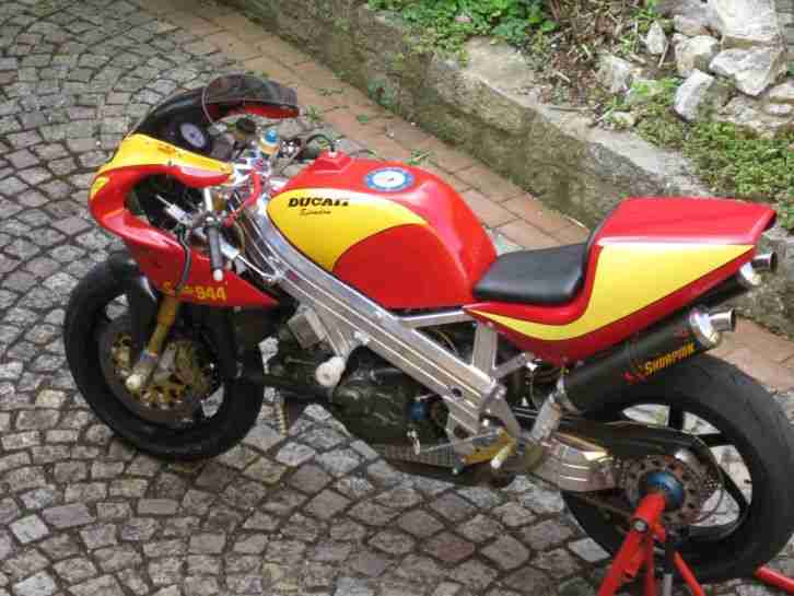 Possibly the only Spondon 996 Ducati ever build. Truly exceptional, with single-sided Spondon Swingarm, extruded aluminum beam frame, optimized 996 engine build by Kaemna in Germany, Oehlins suspension, app. 160kg and 140hp.