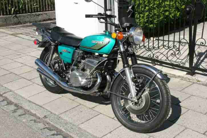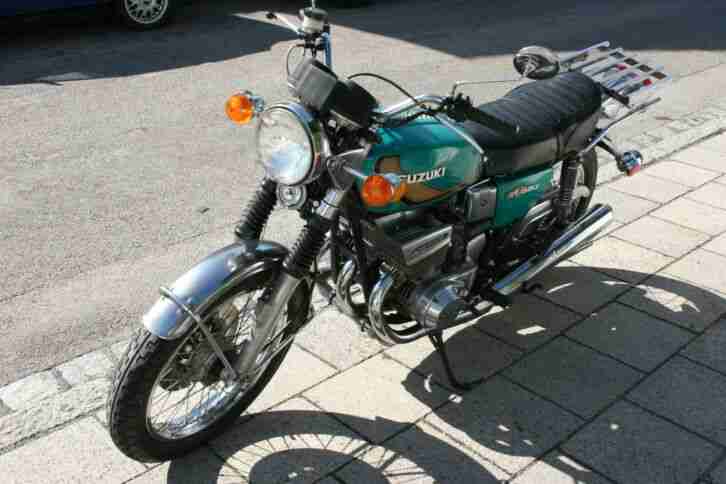 SUZUKI GT 550 Bj.1974originalzustand, stand immer in Garage.läuft, fährt, bremst und schaltet prima.War die letzten Jahre eingemottet.Angebote unterhalb des Startpreis sind unerwünscht.