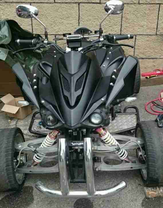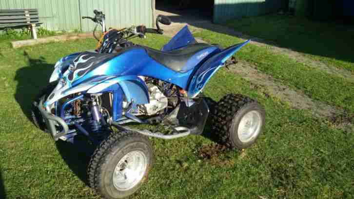 ich verkaufe hier im Auftrag eines Freundes sein Quad. Das Quad ist seit ca. einem halben Jahr in seinem Besitz und lief am Anfang auch ganz gut. Mittlerweile haben sich ein paar kleinere Fehler eingeschlichen. Warscheinlich durch zu langes herumstehen. Der größte Mangel ist warscheinlich, dass der Tacho nicht mehr die richtige Geschwindigkeit anzeigt. Das liegt daran, dass wir eine neue Bremsscheibe an der Hinterachse verbauen mussten und die richtige nicht mehr verfügbar war. Daher haben wir eine Bremsscheibe für ein Shineray 500ccm Quad verbaut. Also praktisch nur eine Baureihe größer. Im Inet stand dazu, dass sie auch für das 250ccm zulässig ist. Leider hat die neue Scheibe aber ein paar Löcher mehr, deshalb zeigt der Tacho eine falsche Geschwindigkeit an. Ein weiterer Mangel ist, dass der Vergaser vollkommen dicht ist und dringend gereinigt werden muss (durch zu viele Versuche das Quad trotzdem zum Laufen zu bekommen ist die Batterie leider mittlerweile leer gelutscht). Zum meines Wissens letzten zu behebenden Fehler: Das Zündschloss hat einen Wackelkontakt. Wird der Schlüssel zu schnell umgedreht, dann Zündet das Schloss nicht. Ansonsten ist das Quad in einem recht guten Zustand. Es ist zur Zeit etwas dreckig, aber es funktioniert, wenn man etwas Liebe hineinsteckt. Und es macht extrem Spaß damit über Koppeln zu fetzen!