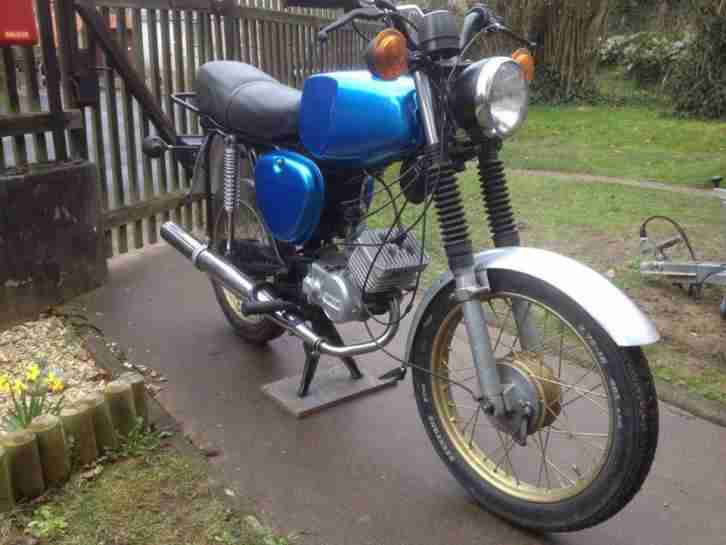 es hat ein originales S51 Motor, was noch nie auseinandergenommen wurde, die Gänge nimmt es schön, gute Fahrleistung, springt leicht an.- Seine Hülle ist im großem und ganzem sehr gut, aber es hat einige Fehler wie man es auf den Bildern sehen kann. kleinere Dellen und Farbfehler, für eine Färbung ein gutes Basis Stück.- Sein Tank ist rostig, aber nutzbar.- 51er Hinter Licht.- Die Bremsen sind ein wenig verschlissen. (ist kein neues Moped)- Unter dem Sitz der Schloss ist gut, aber bei dem Lenkrad fehlt der Schlüssel.- Sein Tacho misst nicht.- Für eine Restaurierung perfektes Basisstück.