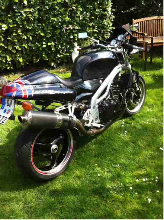 Biete meine Sprint St wegen Zeitmangel zum ersteigern an ! Scheckheft ( bei 20tKm Ventile eingestellt ) ! Unglaublich sparsam (4,2 -5 Liter )und durchzugsstark ! Michelin Pilot Power Reifen aufgezogen die mindestens noch 3000 Kilometer bei normaler Benutzung halten (hinten 4mm vorne 3mm)! 2 Koffer in Fahrzeugfarbe und ein Bagster Tankrucksacksystem sind dabei !Sebering EG Auspuff mit Abe.auch (Original Auspuff gibs dazu ) !Beide Frontscheinwerfer geschaltet! Erhöhte Scheibe in blau und Lenker von LsL.!Macht die Maschine sehr handlich da breiter ! Original Lenker gibs dazu ! Leider mir in der Garage mal auf die rechte Seite gefallen deshalb einige leichte Kratzer ! Ich bin der Dritte Besitzer !