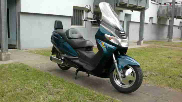 Sie bieten hier auf einen Motorroller der Marke Suzuki Burgmann AN 250. Der Roller ist in einem sehr guten Zustand (siehe Bilder) und hat noch TÜV bis 11/2015. Er läuft und alles funktioniert! Originalpapiere sowie Schlüssel sind natürlich dabei. Die Suzuki ist bereits abgemeldet also wird ein Hänger oder ähnliches zur Abholung benötigt.