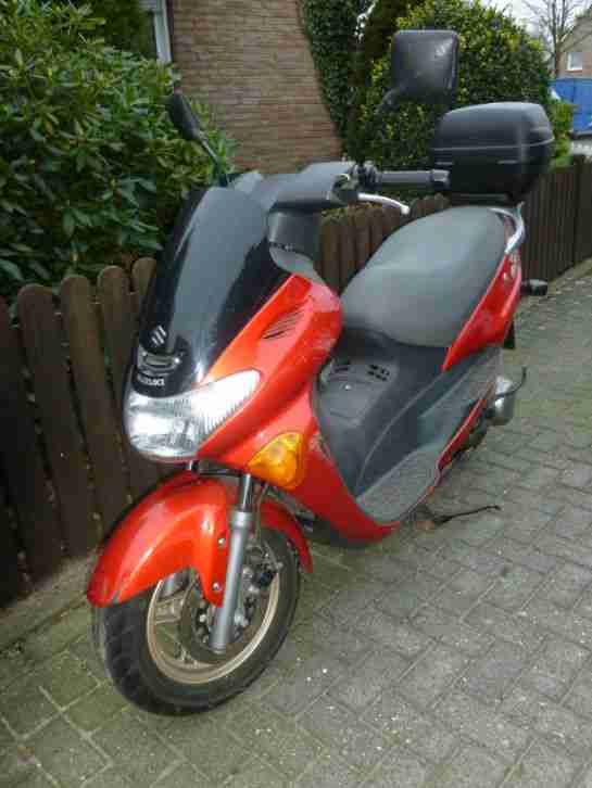 | “Die Suzi ist top gepflegt hat leider einen kleinen Kratzer auf dem Tank. Eckige Spiegel mit rosafarbenden Glas (aus Italien eine Rarität) NP 250 €. Original Bugspoiler in pink NP 300 € allgemeine Betriebserlaubnis vorhanden” |