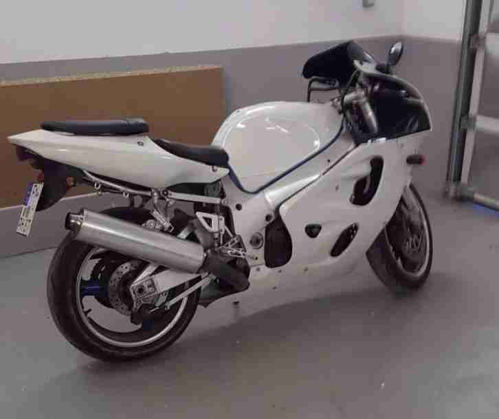Verkaufe hier meine Susi RF 600 R wegen Umstieg auf etwas größeres. Das Motorad ist in gutem Zustand und alle Verschleißteile(Reifen, Kettensatz usw.) sind in Ordnung. Drauf setzen und los fahren. Den Original Auspuff, die Original Scheibe und ein Verkleidungsteil rechts, gibt es dazu,sowie einen abnehmbaren Digital Tacho. das Motorad hat mit seinen 98 PS reichlich Gift. Das Motorad muß binnen 7 Tagen nach Verkauf in Bad Soden Salmünster abgeholt werden und bar bezahlt werden. Das Motorad wird abgemeldet übergeben. Das ist eine Privatauktion deshalb weder Garantie noch Rückgaberecht. Viel Spaß
