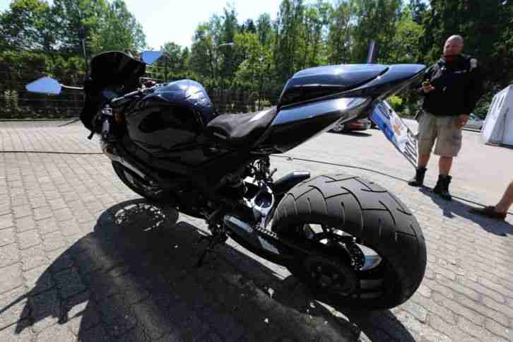 RF Biketech Umbau auf Einarmschwinge CNC gefräst, sowie 10x18 zoll CNC Felge, keine billige Verbreiterung... Alles in schwarz Kunststoffbeschichtet... ALLES eigetragen, auch der Power Commander ;-) R1 Bremsen, Gabel neu abgedichtet, Öl Neu, Kerzen und Zündung NEU, too much to list, soviele Anbauteile vom aller feinsten!!! UND, ihr bekommt alle Teile dazu zum Rückbau, Schwinge, Felge mit 180er Reifen, aber wer will das schon ;-)