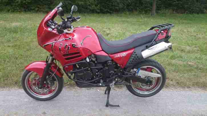 verstärkte Gabelfedern, hohe Windschutzscheibe, Remus Auspuff, klappbarer Gangschalter. Givi TOP Case Halterung