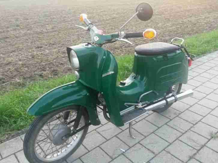| “Maschine ist Fahrbereit vorwärts und Rückwärts schön und seltene Lackierung mit dem Alter entsprechende gebrauchsspuren Kabelbaum verbessert ,Neuere Bessere Vergaser , Bessere Felgen und Bremsen und Neue Lichtmaschine Alles von einer Fachwerkstatt eingebaut.Leider muß ich die Maschine aus Zeit- und Platzmangel verkaufen. es gibt noch Ersatzteile dazu wie Vergaser Reifen etc.” |