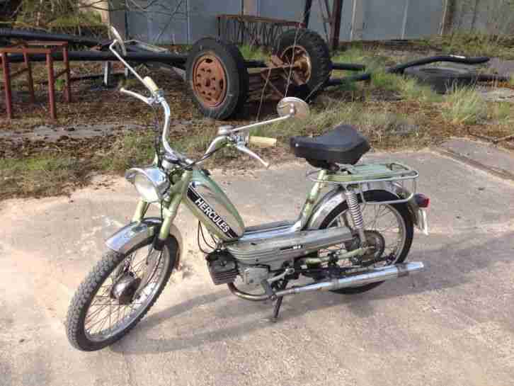 Hallo ich biete hier ein wunderschönes Mofa der Marke Hercules zum kauf an. Das Mofa hat eine 2 Gang Handschaltung und ist für seine 24 Jahren gut im schuss. Das Mofa hat leichten Flugrost an den hinteren Dämpfern und am Gepäckträger. An der vorderen Gabel ist ein Kratzer der auch Rost angesetzt hat was allerdings durch Politur aber kein problem sein wird weg zu bekommen. Das Mofa springt sofort ohne probleme an und läuft sehr gut, es ist in einem absoluten Originalzustand also nicht verbastelt. Ich habe das Mofa vor ca. 3 jahren vererbt bekommen leider wurden die Papiere und der Zündschlüssel nicht gefunden was allerdings kein problem ist, da man die Papiere neu beantragen kann. Ein Zündschloss kostet um die 10 Euro ca.. Lassen sie sich am besten von den Bildern überzeugen bei weiteren Fragen stehe ich ihnen gerne zu verfügung. Da es ein Privatverkauf ist kann ich keinerlei Garantie oder Gewährleistung geben. Nun wünsche ich viel Spaß beim bieten.