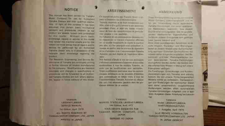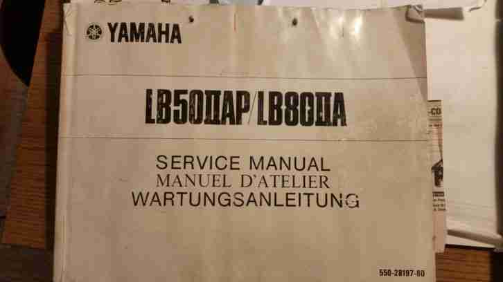 für alle die an ihrer Yamaha Chappy ob 50 cccm oder 80 ccm etwas zuschrauben oder zu reparieren haben wird heute der große Helfer versteigert.1Stück YAMAHA SERVICE MANUAL, in 3 Sprachen.Das Buch umfaßt über 230 Seiten. Es ist mit vielen Zeichnungen ausgestattet.Ferner sind die Anzugsdrehmomente vorhanden.Des weiteren eine umfangreiche FEHLER-SUCH-ANLEITUNG.Ein Schaltplan für die 50er und die 80er.und vieles mehr.Schaut euch die Fotos an.Also mit dieser Anleitung bekommt ihr jede ALTE CHAPPY wiederfahrbereit und in einen super Zustand.
