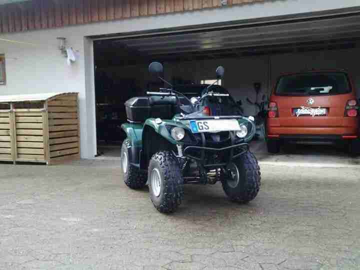 Grizzly 700 mit elektrischer Lenkunterstützung, Allrad, Untersetzung und Differenzialsperre zuschaltbar, offene LOF - Zulassung, TÜV neu, 2 Vorbesitzer, 2 Softkoffer, 2 Hartschalenkoffer und Frontscheibe mit Scheibenwischer (momentan demontiert), 4 zusätzliche Straßenreifen auf Alufelgen, Griffheizung, Anhängerkupplung mit zugehöriger Elektrik und mobile Seilwinde. Das Quad ist in einem technisch einwandfreien und optisch guten und dem Alter entprechenden Zustand. Der Vorbesitzer hatte es 7 Jahre, war Polizist und fuhr damit auf seine Almhütte. Ich selber habe es kaum gefahren. Damit ich im Wald oder auf dem Berg nicht immer gleich angehalten wurde, ist eine (neue, unbenutzte) Motorsäge auf dem Frontgepäckträger. Diese gebe ich mit. Das Quad ist zugelassen und kann jederzeit zur Probe gefahren werden. Evt. kann es auch zugelassen übergeben werden.