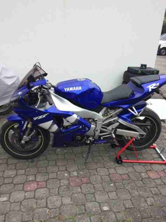 Hallo biete hier meine Yamaha R1 Bj 2000 mit 43134 tkm und TÜV bis Juni 2016 .der motorrad ist im sehr gute Zustand um-Unfallfrei .letztes Jahr hat sie neue Reifen bekommen die sind ca 1500 Kilometer gefahren,neue Kupplung ,Lichtmaschine und Zündkerzen vor par Tage neue baterie,neue Bremse vorne und bremsflüsigkeit ,vergaser optimiert und eingestellt ,Gabelsimeringe und neue Öl also Motorrad in top Zustand m