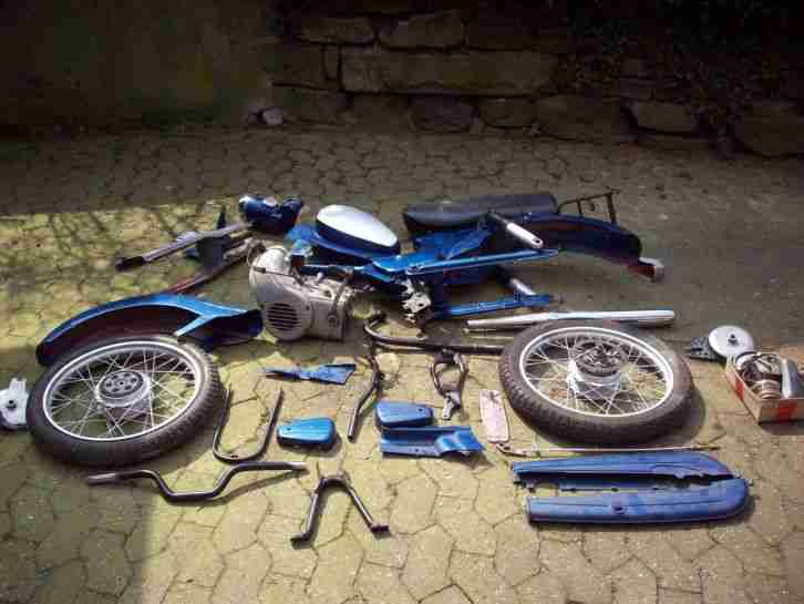 Verkaufe komplett neu aufgebaute Zündapp CS25 mit Papieren. Der Rahmen wurde komplett gesandstrahlt und pulverbeschichtet, der Tank lackiert. Motor komplett erneuert (revidiert). Neuer 50ccm Zylinder und Kopf von Athena. Breiterer Lenker. Neue Federbeine und Stollenreifen. Sitzbank von der CS25 Hai. Außerdem wurde ein größerer Vergaser eingebaut der noch eingestellt werden muss. Es gibt noch die Originalteile wie Kettenschutz, Vergaser und Zündschlosseinheit dazu.... Bei weiteren Fragen stehe ich Ihnen gerne zu Verfügung.