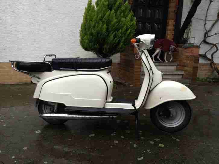 Ich verkaufe eine Zündapp R50, Baujahr 1970 mit Gepäckträger, Reserverad und einem neuen Satz Mäntel. Ich habe den Roller gebraucht gekauft und komplett überholen lassen (Vergaser gereinigt, Kupplung neu eingestellt, Batterie gewechselt, etc.). Er springt beim ersten Tritt an und schnurrt, wie ein Kätzchen, wenn er läuft. Der Roller kann sofort gefahren werden. Papiere sind vorhanden.