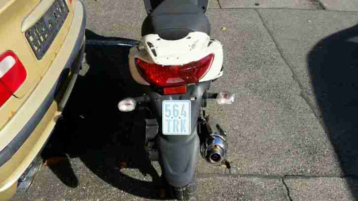 | “roller ist aus 1 hand inspektion bei 446km-2480km-5146km-10000km nun ist der tüv abgelaufen bremse hinten defekt anlasser geht nicht tankuhr geht nicht laufen tut er noch gut,bj ist aug.2010 mit dabei brief serviceheft bedinungsanleitung 2schlüssel roller hat gebrauchsspuren privatverkauf unter aussschlss jeglicher gewärleistung” |