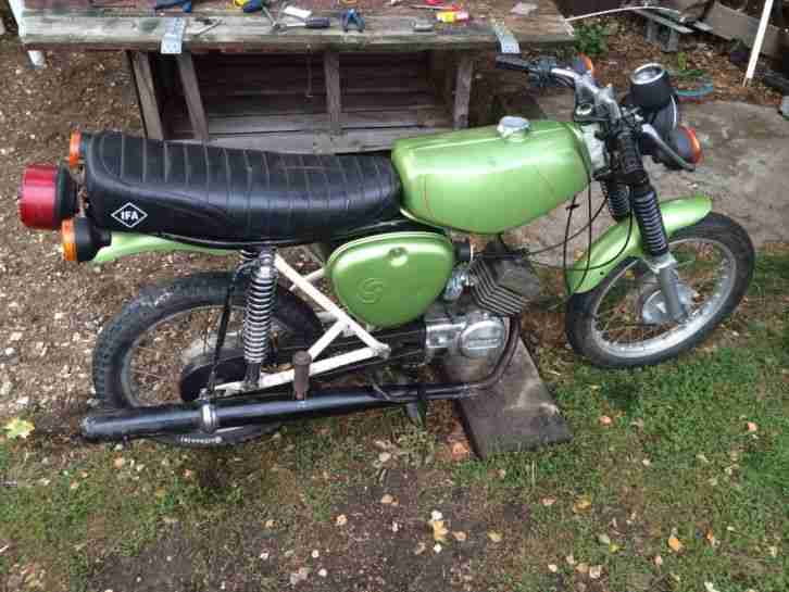 Winterprojekt S51. KBA Papier. Nicht zugelassen. Nicht schön aber komplett, 6v Elektronik, funktioniert alles. Springt aber schlecht an und läuft scheisse. Tippe auf öl im Kolben. Also Motor muss gemacht werden. Der Rest eigentlich auch aber das ist Geschmacksache.