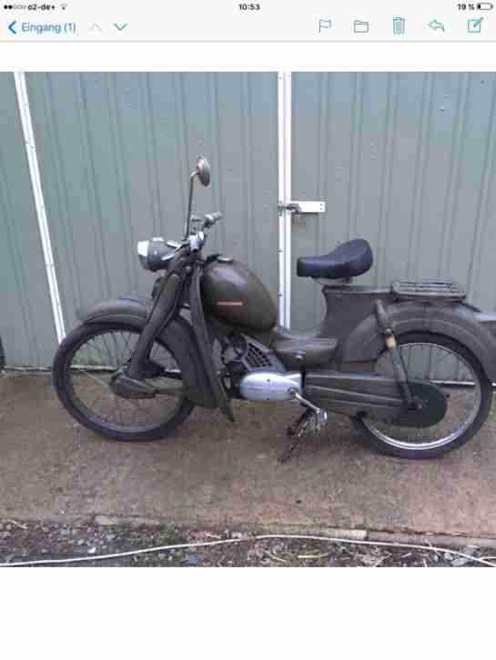 Verkaufe zündapp combinette 428-10 2 Gang Handschaltung sollte für die Bundeswehr sein die Überproduktion wurde von BASF als Werksmoped übernommen in der Betriebserlaubniss ist BASF eingetragen Ist sonst kein anderer Besitzer eingetragen Die zündapp ist Original sollte auch so bleiben schaltet und läuft sehr gut man sollte sie nur mal wieder neu einstellen löäuft aber perfekt bin gestern ca 6 km mit gefahren Papiere sind auch Original Die zündapp läuft über 6 Volt Bj 1964 diese Mopeds sind sehr selten geworden ich weiß nur noch von einer die in Berlin bei der Bundeswehr zugelassen war